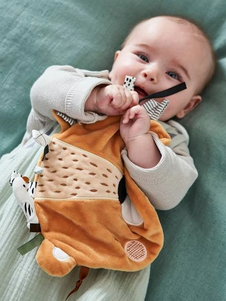 On craque pour cet adorable doudou plat lionceau qui permettra à bébé de faire de multiples découvertes ! Une crinière composée de rubans et de petits éléments à triturer et à mâchouiller, du velours à câliner et un attache-tétine pour avoir la tétine toujours à portée de mains… Essayer notre joli lionceau, c’est l’adopter !